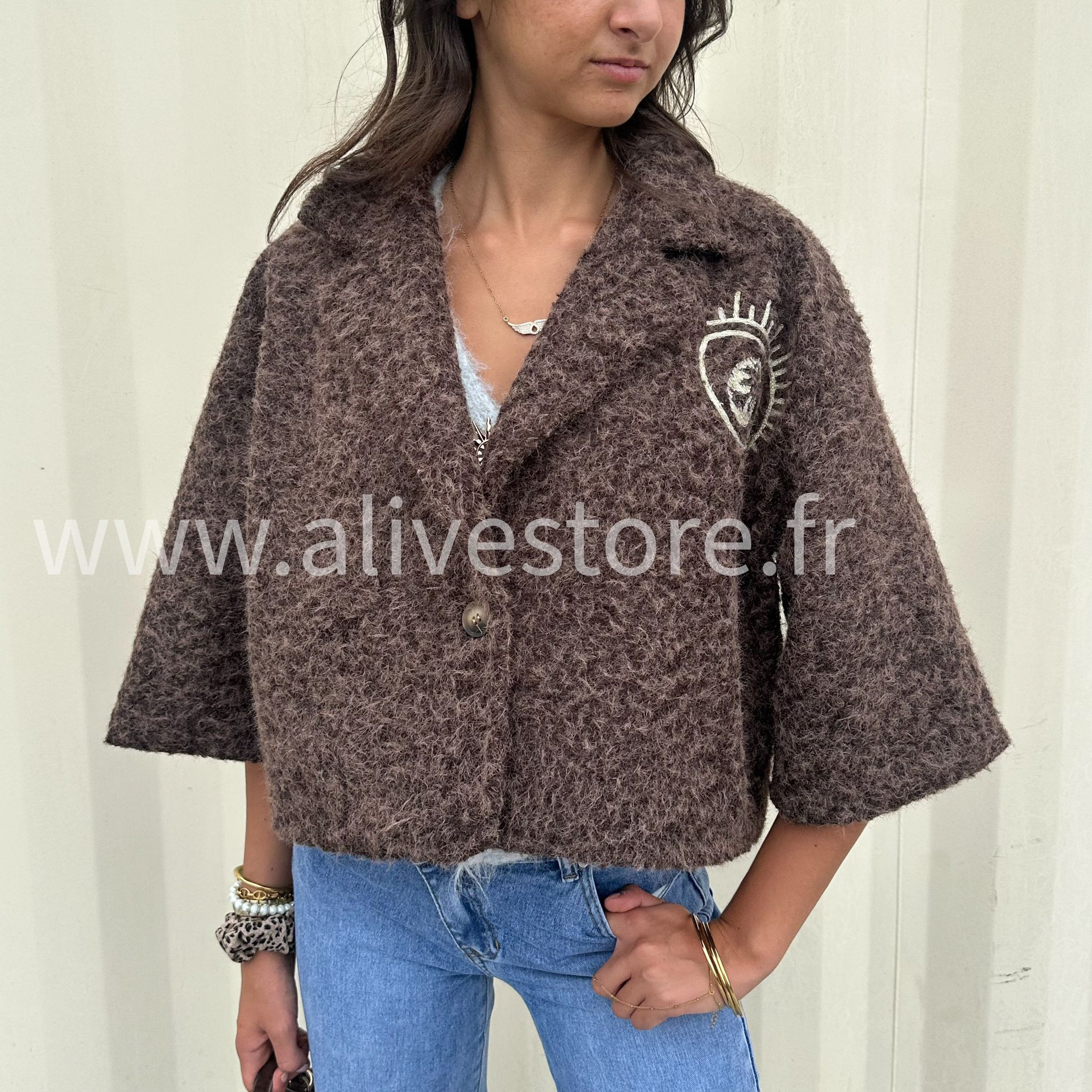 LA VESTE GIULIA EST LA PIÈCE FORTE DE CETTE SAISON. AVEC SA COUPE COURTE ET SON DÉTAIL BRODÉ TENDANCE, ELLE APPORTE UNE TOUCHE CHIC ET ORIGINALE À VOS TENUES. DISPONIBLE EN BEIGE ET MARRON, ELLE SE PORTE FACILEMENT SUR UN JEAN OU UNE JUPE POUR UN LOOK CASUAL-ÉLÉGANT. FABRIQUÉE EN ITALIE À PARTIR D’UN MÉLANGE DE POLYESTER ET DE LAINE, ELLE VOUS GARANTIT STYLE ET CHALEUR POUR L’AUTOMNE.
