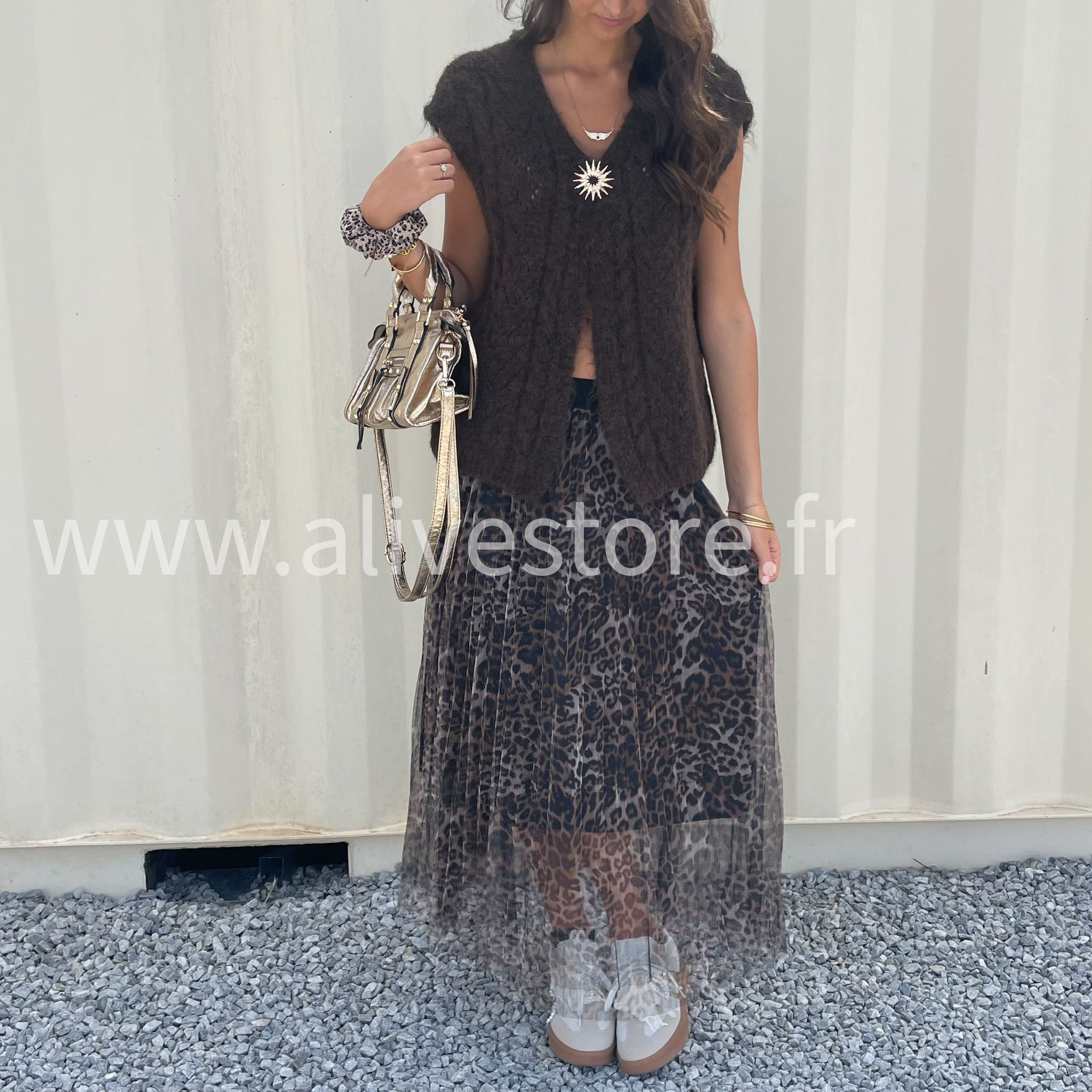 LA JUPE CAMILA APPORTE UNE TOUCHE SAUVAGE ET TENDANCE AVEC SON IMPRIMÉ LÉOPARD DISPONIBLE EN DEUX VARIANTES.