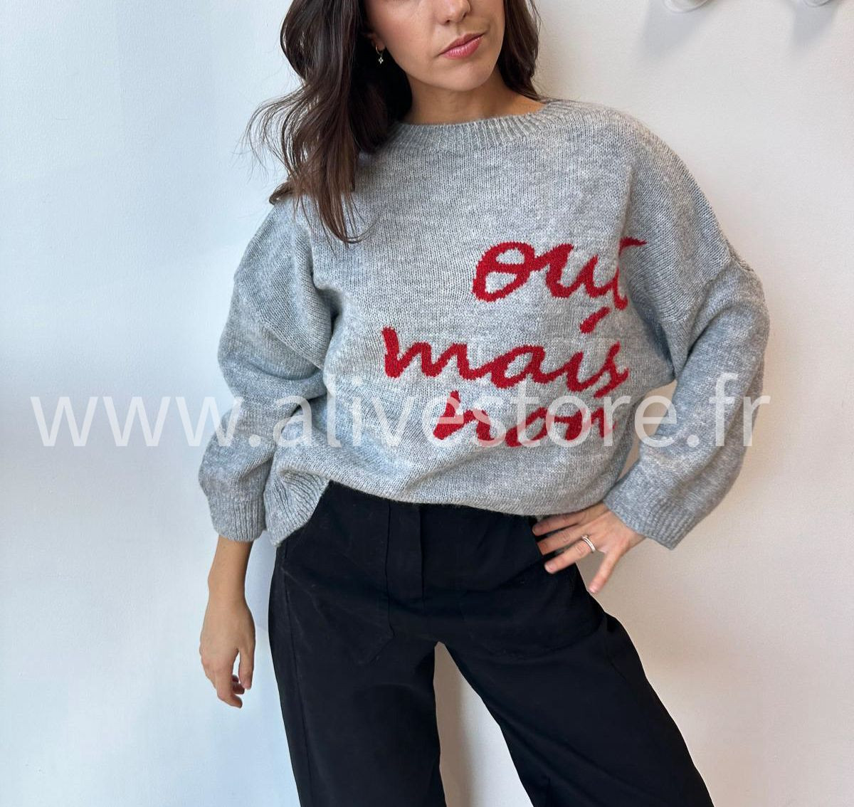 PULL MANCHES LONGUES INSCRIPTION DEVANT "OUI MAIS NON"
