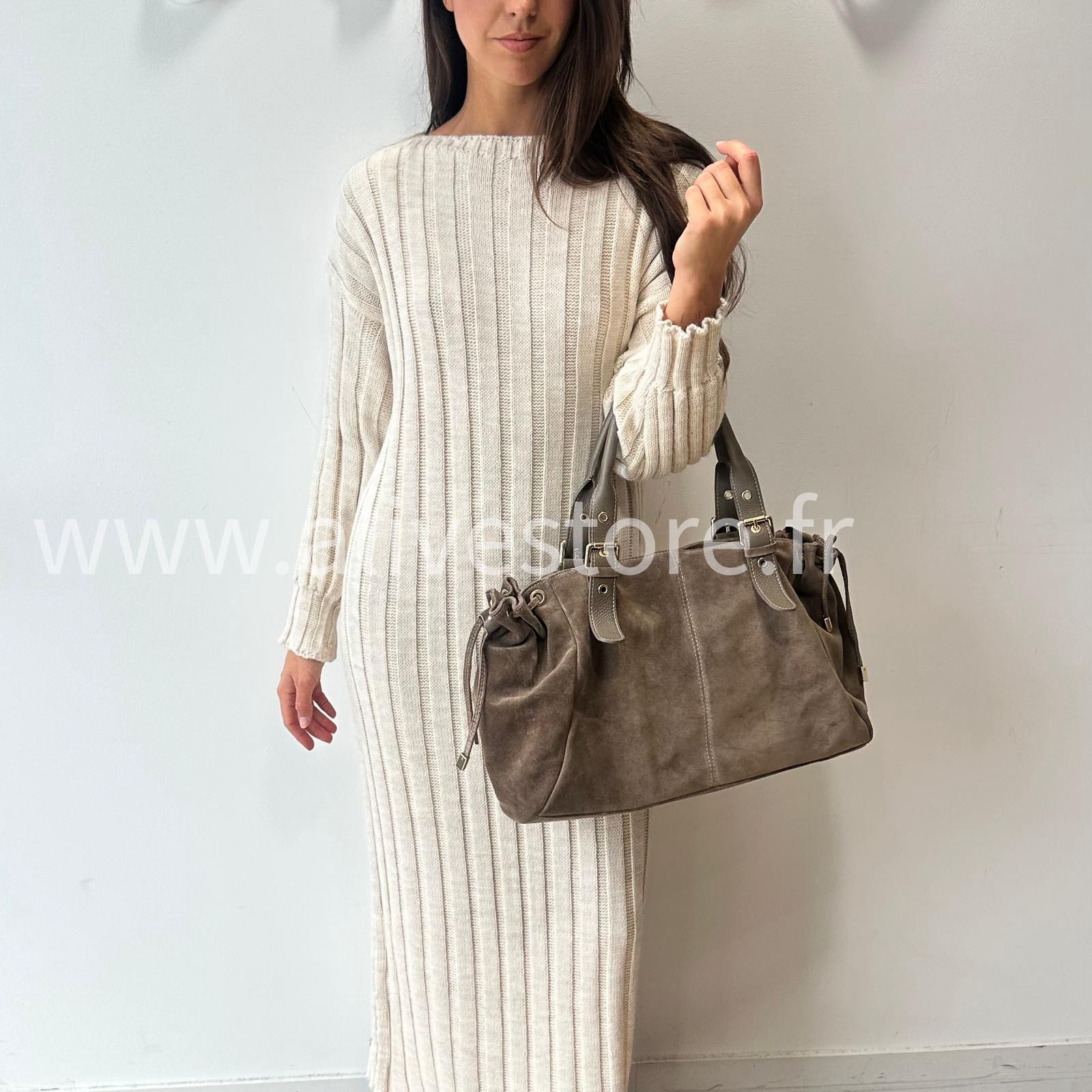 SAC EN 100% CUIR VÉRITABLE DISPONIBLE EN TAUPE, NOIR ET MARRON. FORMAT IDÉAL POUR LE QUOTIDIEN : LONGUEUR 46 CM, HAUTEUR 25 CM.