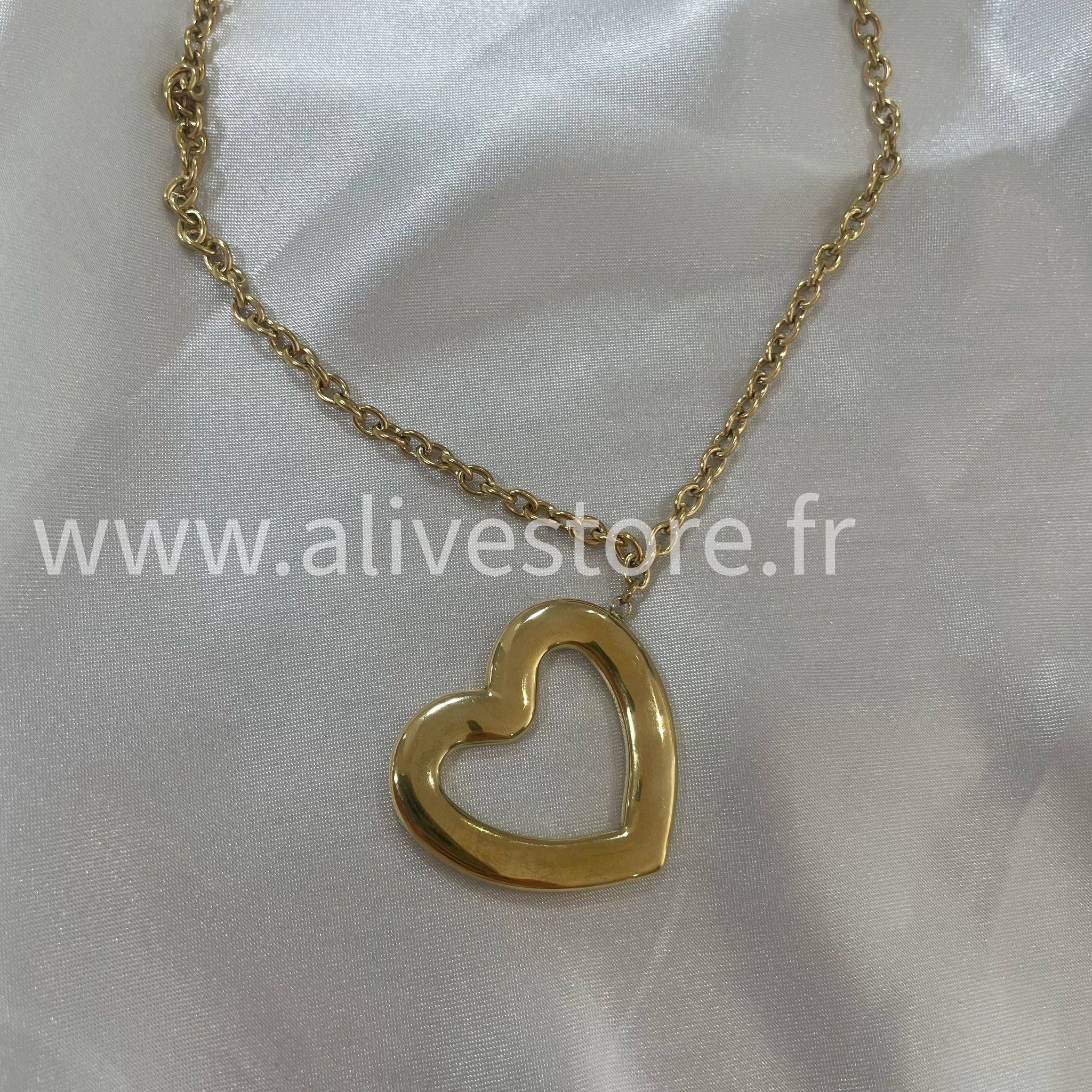 LE COLLIER LÉANA EST UN BIJOU DÉLICAT ET FÉMININ COMPOSÉ D UNE CHAÎNE DORÉE ET D UN PENDENTIF CŒUR AJOURÉ AU DESIGN ÉPURÉ IL APPORTE UNE TOUCHE ROMANTIQUE ET INTEMPORELLE À VOS TENUES DU QUOTIDIEN COMME AUX OCCASIONS SPÉCIALES CONÇU EN ACIER INOXYDABLE IL RÉSISTE À L EAU ET SE PORTE FACILEMENT SEUL OU EN ACCUMULATION