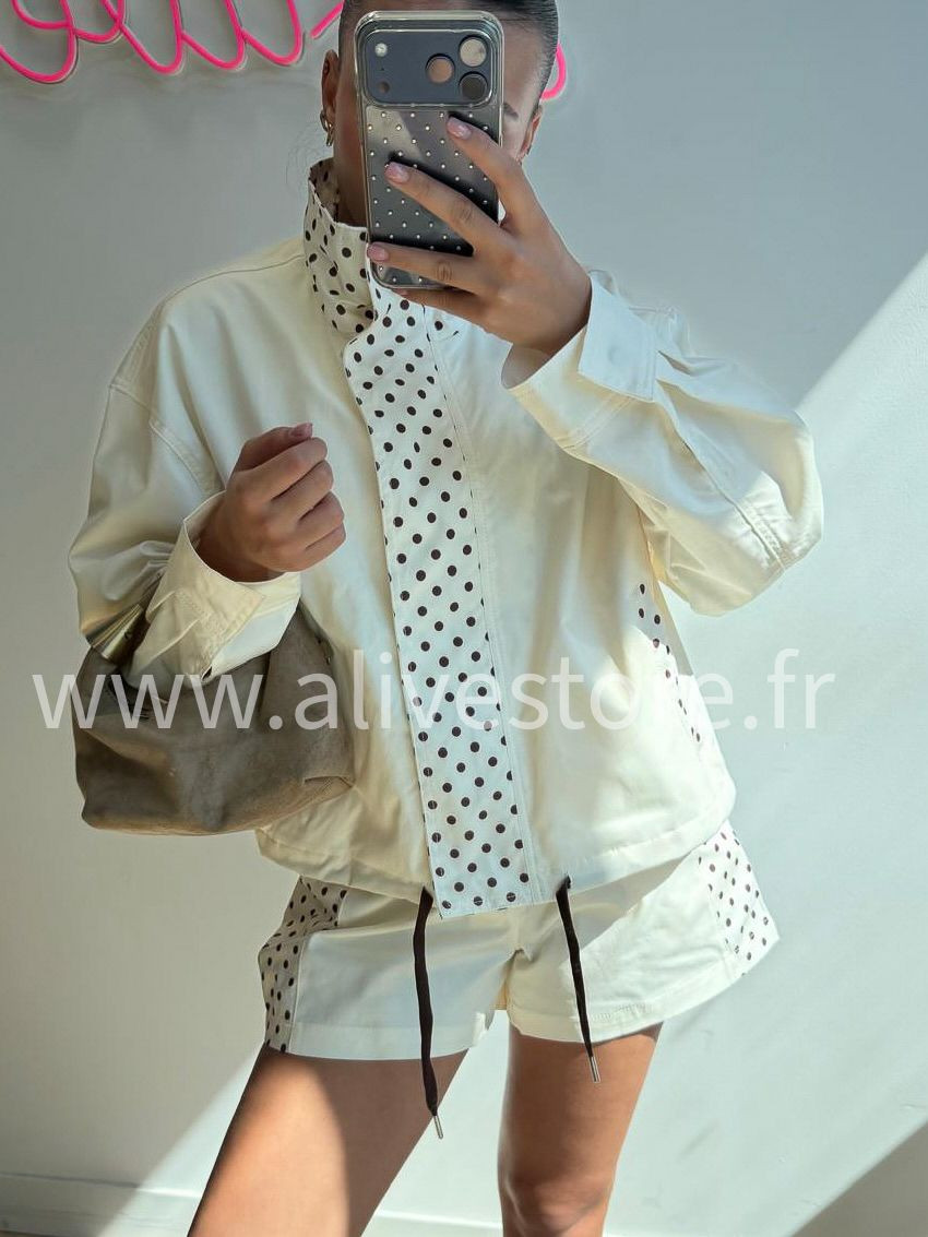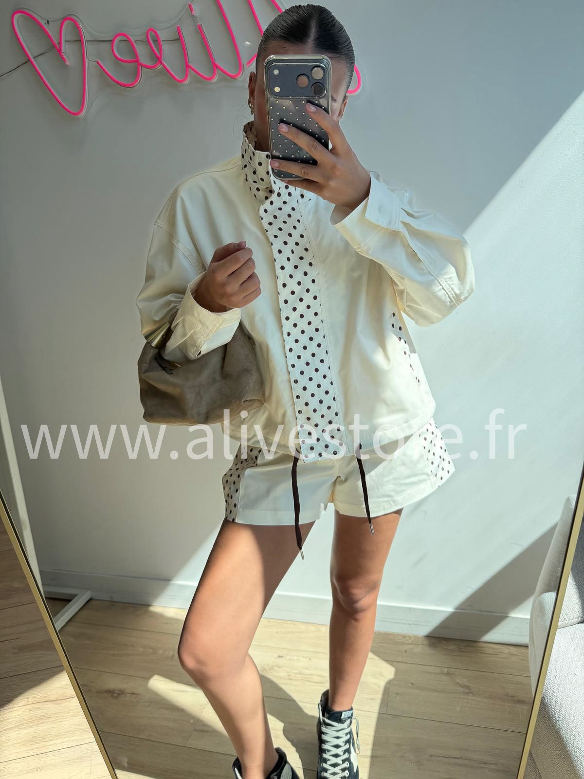 ENSEMBLE COMPOSÉ D’UNE CHEMISE ET D’UN SHORT AVEC DÉTAILS À POIS POUR UN LOOK ORIGINAL ET MODERNE